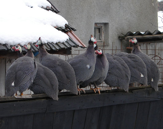 Ma fascineaza in special pasarile de curte mai deosebite, printre care si bibilicile. Nu stiu de ce dar mi se pare ca au asa un aer de pasari extraterestre, la fel si curcanii. Am vazut zilele trecute la cineva pe un gard un grup de bibilici stand la soare si nu m-am putut abtine sa nu le fac o sedinta foto. Sunt super curioase si scot niste sunete ciudate cand te apropii prea tare. Am tot vrut sa merg pe la expozitii de pasari de curte dar nu am reusit niciodata sa aflu din timp locul si data asa ca tot timpul am aflat dupa ce au avut loc.