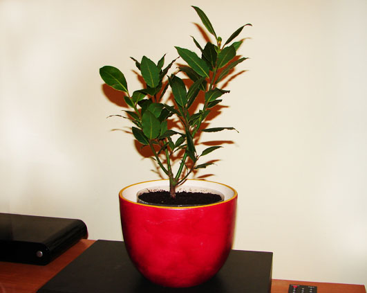 M-am harnicit si eu dupa ceva vreme si am reusit sa-mi plantez dafinul. I-am gasit si un ghiveci care i se potriveste pe masura si are si putin aer mediteranean.