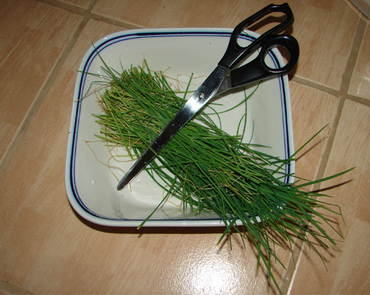 Mi-am luat usturoiul de tuns la jumulit si am cules ultima recolta. Va ma produce el cate ceva peste iarna dar nu foarte viguros. L-am luat cu ghiveci si l-am dus in baie unde i-am facut freza de iarna si m-am ales cu o mana buna de frunze proaspete numa bune de pus in ceva pasta de branza.