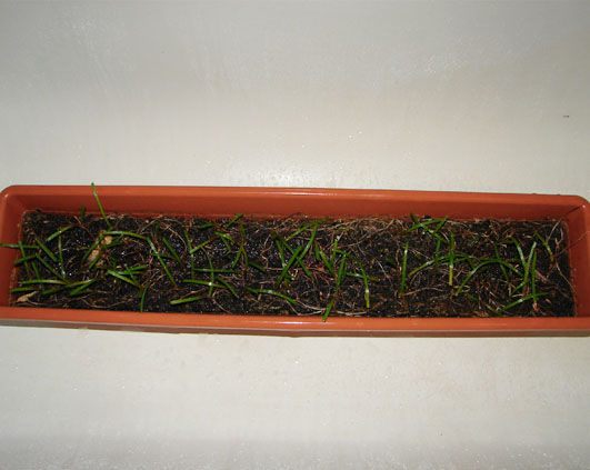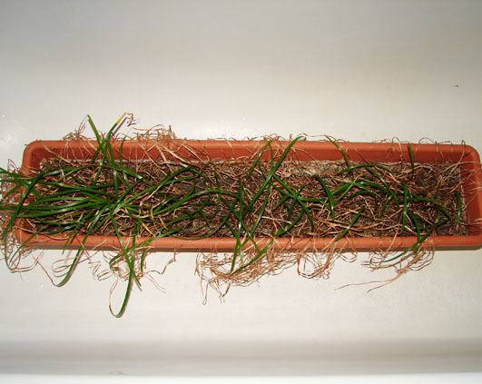 Apoi a venit randul Zephyranthes-ului care saracul a fost cam neglijat vara asta si s-a cam inghesuit. L-am curatat si pe el de funze moarte si l-am tuns putin. Poate la primavara voi avea mai mult loc sa-l mut si sa-l separ.