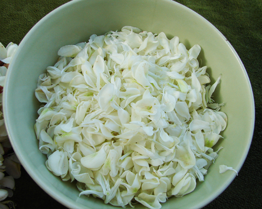 La fel ca anul trecut, si anul asta ploaia s-a pornit fix cand sunt infloriti salcamii. Dar anul asta bunicii au cules destul si pentru noi. Asa ca mi-am bagat nasucul in plasa cu flori si m-am lafait :). Ei le culeg sa le usuce pentru ceai la iarna, eu insa le folosesc pentru niste delicatesuri 🙂