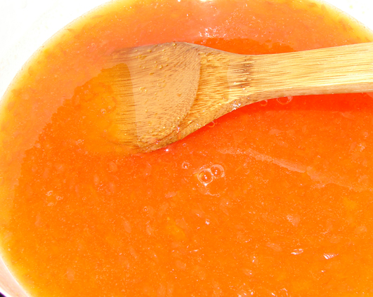 Merci frumos. Eu faceam mere de vara cu portocale insa anul asta nu prea au fost mere. Aspectul e mai degraba a jeleu, fiind dat prin sita s-a omogenizat foarte bine, iar din cauza citricelor e cumva transparent.