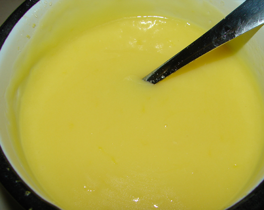 M-am tot invartit pe net sa caut o reteta pentru lemon curd care sa-mi si convina. Adica simpla si usor de facut. Si am gasit-o. Se iau: 3 oua intregi, coaja de la 1 lamaie, 1/2 cana (cup) zeama de lamaie (2 lamai), 1/2 cana (cup) zahar si 6 linguri (tablespoons) unt taiat bucatele marunt. Se amesteca toate si se pun pe foc mic