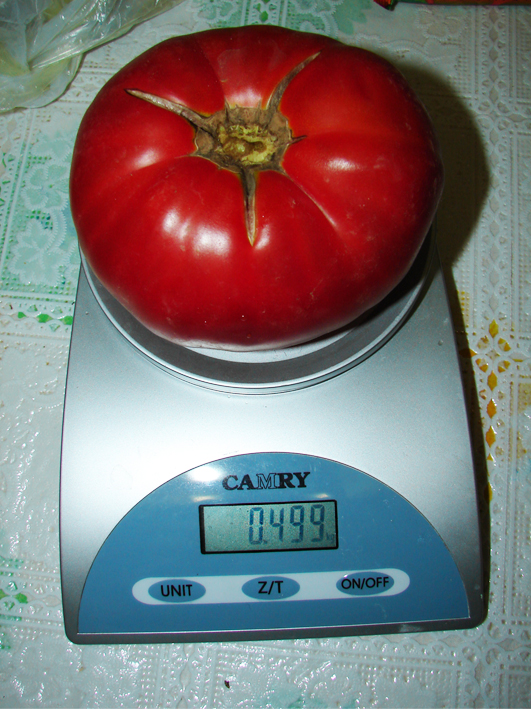 Toata lumea se lauda in sus si in jos cu rosiile lor mari :). Am si eu una, nu foarte mare comparativ cu ce-am vazut pe la ei, insa avand in vedere conditiile in care a crescut (sol argilos, beton cand e uscat si clei cand ploua) pentru mine e cea mai mare rosie. Cu seminte de la Vasi 🙂 multumiri. A fost si super delicioasa.