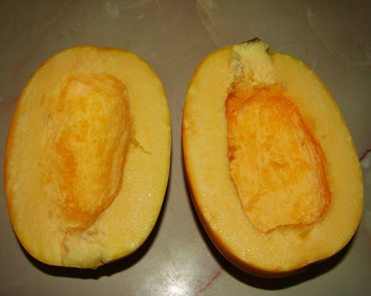 Asa ca aseara ma apuca pofta de dovleci 🙂 Cum zilele trecute am facut dovleac copt am zis sa-l vad acum pe domnul spaghetti ce poate. L-am taiat frumusel in doua, am scos semintele si le-am pus deoparte pentru la anu