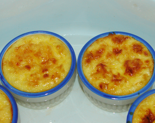 Apoi am amestecat doua oua cu o lingura de zahar si 150 ml lapte si le-am turnat in forme peste zaharul ars