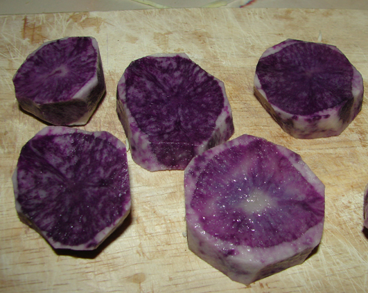 Sunt minunati cartofii astia, de aia am vrut si eu sa ii am in gradina. Dar stii, ca anul trecut experimentul meu a esuat. Ai aflat vreun secret? Si noi am facut piure din cartofi violeti, si l-am servit intr-un aranjament cu piure din cartofi normali si cartofi dulci. Ca tot a venit vorba, Nu stiu daca ai incercat sa prajesti cartofi dulci, sunt foarte buni.