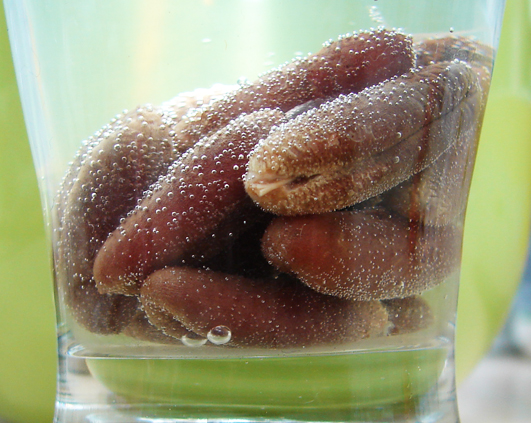 N-am mai mancat curmale de cand eram mica. Niciun motiv anume cred, insa n-am prea avut mare tangenta cu ele si mi se pareau mult prea dulci pentru gustul meu. Intr-una din zilele trecute mi-am luat o punguta de curmale. Mi-a placut sa bag cateva in gura dimineata in drum spre servici. Insa tentatia era pe masa din bucatarie si mai rontaiam catevasi seara. Acestora insa nu le-am aruncat samburii, i-am pus intr-un pahar cu apa, si i-am spalat apoi bine sa nu mucegaiasca.