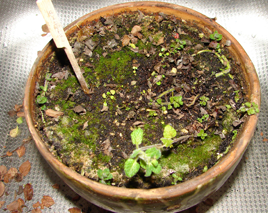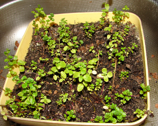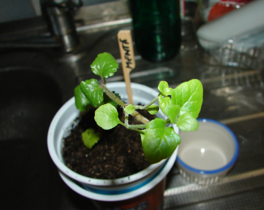 Mai imi ramane de cumparat pamant si transplantat plantutele de menta, eventual dupa ce noii lastari vor deveni mai marisori, insa la cum arata nu va trece prea mult.