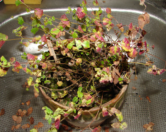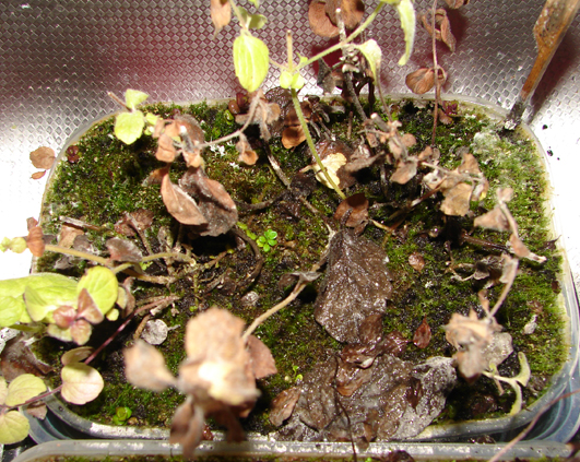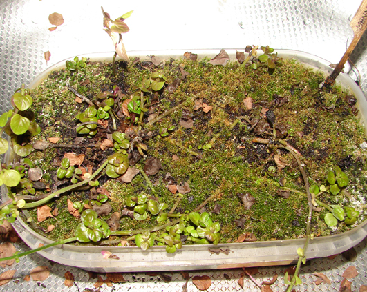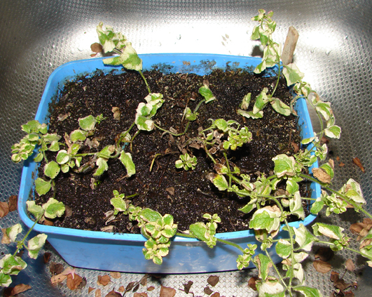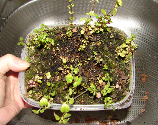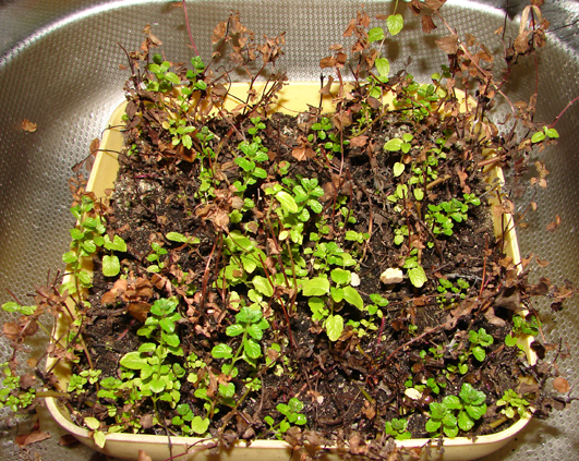 Si in cele din urma am plantat un fir de menta indiana (Satureja douglassi) ce-l pusesem la inradacinat in apa cu cateva zile in urma