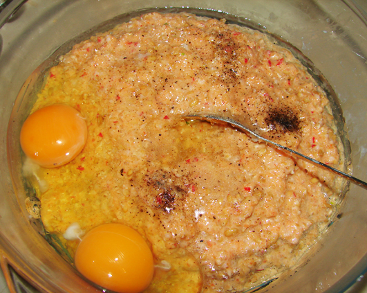 Am mai pus un gat de ulei, sare si piper si doua oua