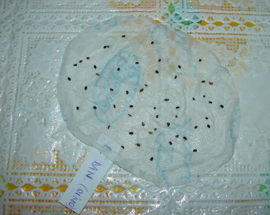 Discurile uscate se vor planta apoi direct in ghiveci. Astfel scutim pierderea de seminte, mai ales daca ele sunt foarte mici sau putine si semanatul direct pe sol ar face ca ele sa cada prea apropiate sau mai multe la un loc sau prea aproape de margini. Pe hartie putem ajusta distanta dintre ele cat e inca ud lipiciul, lucru care e mai greu de facut direct pe sol, in special cu seminte foarte mici. Spor la treaba!
