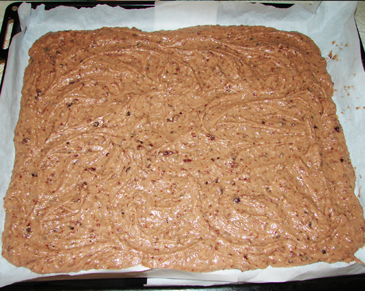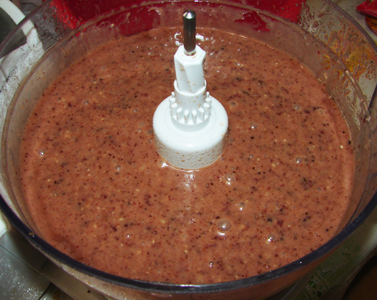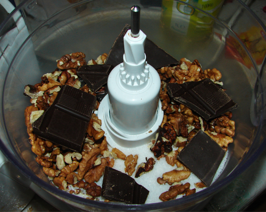 Eu am pus asa: 1/2 cana zahar, 1 cana ulei, 1 cana apa, un borcan de dulceata amestec visine si zmeura cu o consistenta mai curgacioasa, praf de copt, 1/2 ciocolata neagra, 1 cana nuca bucati, faina 15 linguri cu varf – atat mi s-a parut mie ca cuprinde 🙂