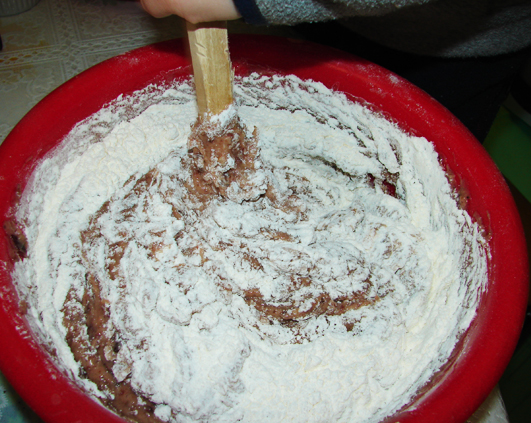 Am adaugat praful de copt si faina treptat pana mi s-a parut mie ca e destul de gros