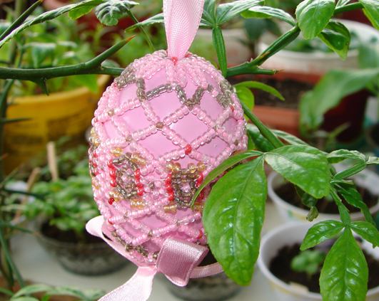 Un ou de Paste ce aduce aminte de …globurile de Craciun. Dar e frumos :).