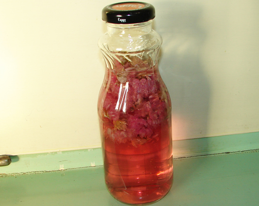 Asa arata otetul cu flori de cepisoara dupa 10 zile, roz si foarte puternic mirositor a ceapa.