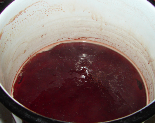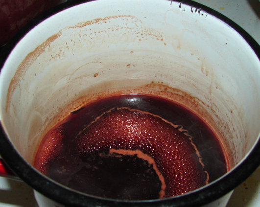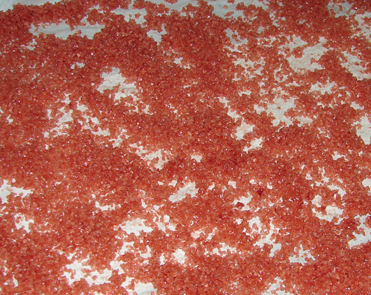 Dupa cum v-am spus, m-a traznit o noua idee, sarurile aromate. Si dupa ce am dat o caruta de bani pe cateva grame de sare aromata cu diverse, am hotarat sa-mi fac singura saruri aromate. Ultima creatie e sarea cu vin rosu. Aveam o sticla cu vin rosu de casa, asa ca am inceput “mirositorul” proces. Am pus vinul intr-o oala si l-am lasat la fiert pana s-a evaporat de tot si a ramas o lingura buna de sirop gros de vin. In tot acest timp casa mirosea a vin fiert de-ti muta nasul.