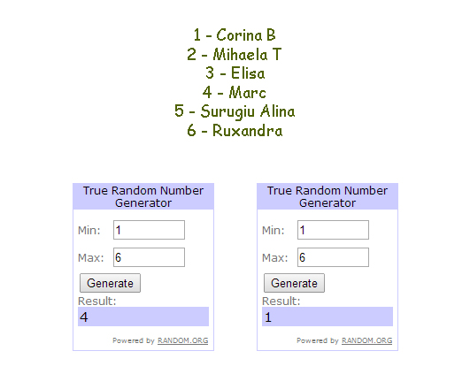Se pare ca fiind primul meu giveaway am incurcat putin borcanele. Eu pusesem lista cu participantii in ordinea in care au comentat, apoi cele doua rezultate adica numarul 4 si 1, adica cei doi castigatori fiind Marc si Corina B. Acum ca tot am facut-o de oaie, si v-am facut sa credeti ca toti sunteti castigatori, o sa ma revansez fata de cei pe care i-am zapacit si o sa primeasca si ei cate un mic cadou. Adresa mea de email este xtremdesign@gmail.com, ea apare in profil la avatarul meu 🙂 Astept astfel adresele tuturor “castigatorilor”.