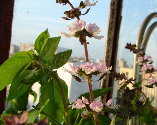 De caldura din balcon se pare ca profita la maxim menta si busuiocul care au hotarat sa se umple de flori si astfel sa se umple si balconul meu de albine si bondari 🙂