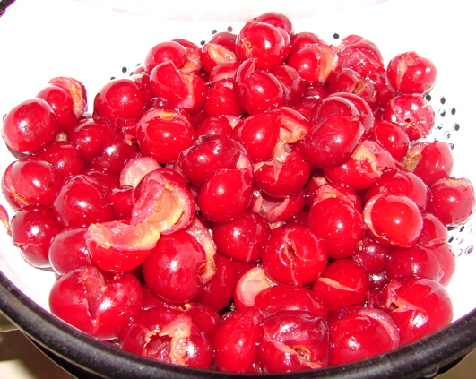 Incerc mereu sa gasesc solutii de stocare a fructelor fara a folosi prea mult zahar. Asa ca m-am socotit eu ce sa mai fac cu inca o tura de visine. M-am gandit sa le pun la congelator, insa cum nu dispun de congelator decat cel incorporat in frigider, nu doream sa-mi ocup tot spatiul, insa totusi vroiam cateva fructe proaspete pentru pus in iaurt sau placinte. Asa ca mi-a traznit o idee. Am curatat visinele de samburi.
