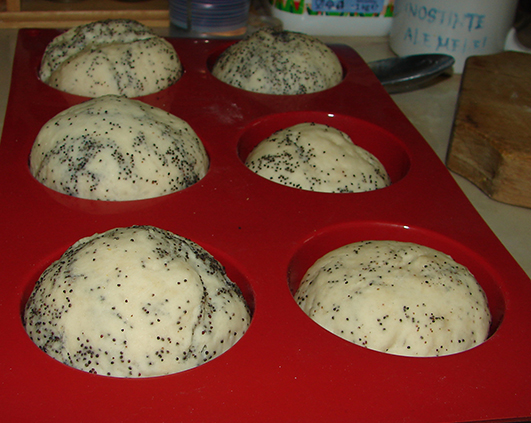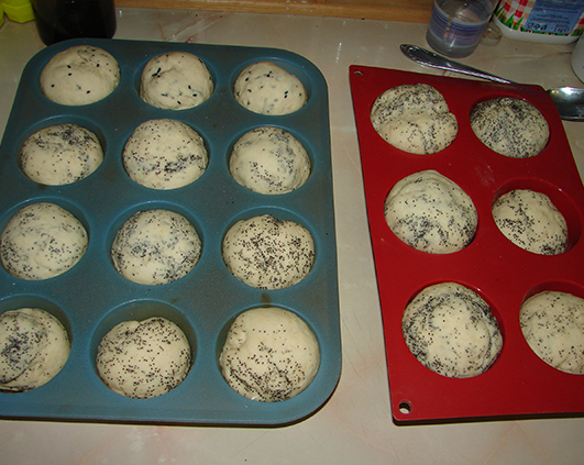 Am facut mai multe chifle pe care le-am pus la crescut in forme de briose.