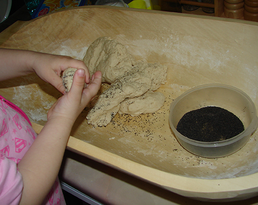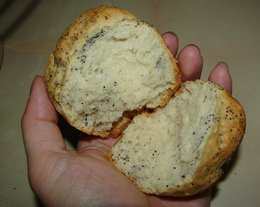 Astfel s-a ivit momentul de a inaugura copaia. Copilul vroia neaparat sa facem ceva cu mac, asa ca am pus de framantat. Si ca sa se poata juca si ea am hotarat sa facem chifle cu mac.