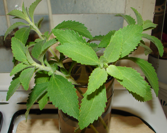 Am reusit sa iernez pe masa din bucatarie cele doua plante de stevie dulce. S-au lungit, s-au subtiat, au lesinat, dar au supravietuit. In primavara, tarziu, dupa ce s-a incalzit bine, le-am scos din nou in blacon. Plantele mele au renascut, s-au umplut de frunze suculente, au facut lastari lungi si grosi si au vrut sa uimeasca. Au reusit 🙂