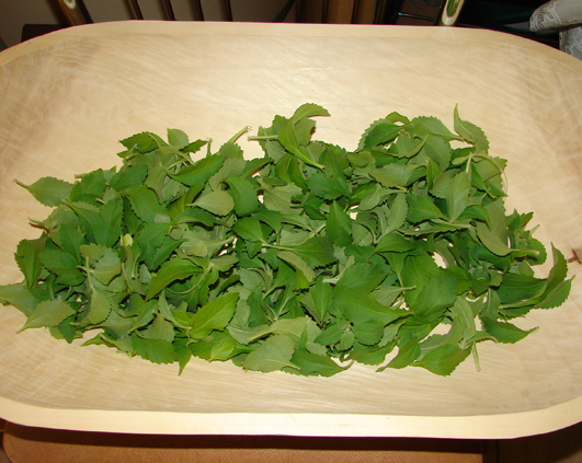 Asa ca am decis ca e momentul sa le trag o tunsoare si sa-mi refac stocul de frunze pentru ceai. Asta este recolta de pe doua plante. Daca as avea loc pentru mai multe n-as mai avea nevoie de zahar deloc 🙂