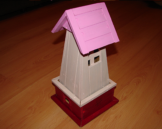 Acuma eu sincer nu cred ca e o casuta potrivita pentru pasarele, e doar decorativa, dar daca copilu’ asa vrea sa creada, zic si eu ca ea 🙂