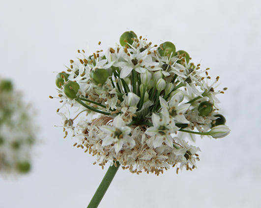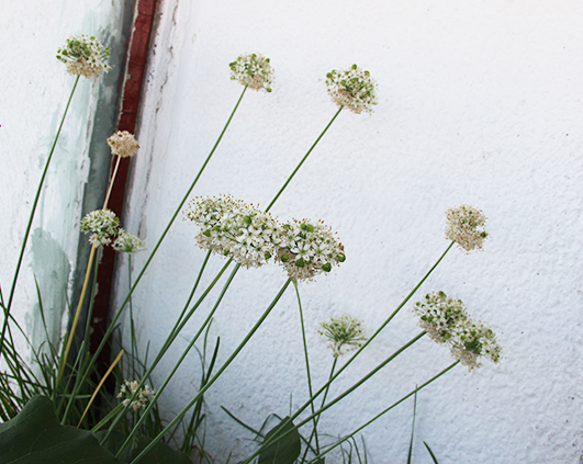 Toata vara mi-a bazait o viespe in balcon. O vreme zbura pe geam afara cand ieseam unul dintre noi in balcon, apoi nu s-a mai deranjat, isi vedea de treaba ei. Si acum am aflat care era treaba ei. Poleniza de zor florile de usturoi.