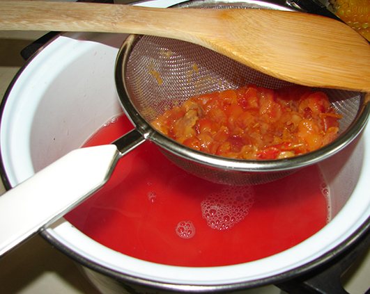 Si pe cand dadeam eu de zor prin sita vad ca ceea ce iese e cam zeama. Asa ca neavand prea mult chef sa stau sa fierb zeama respectiva pana se face gem, am decis sa fac sirop.