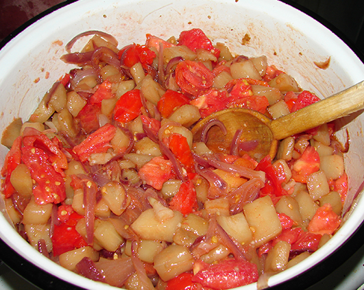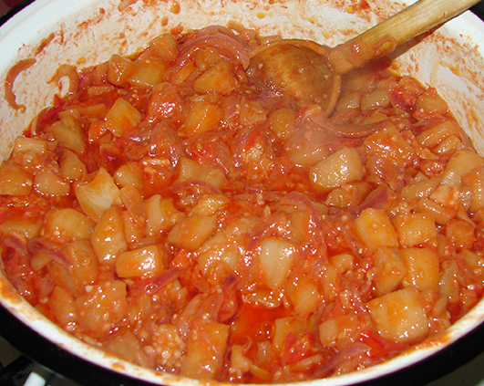 Apoi am adaugat vreo patru rosii coapte bine tocate, ca bulion n-am avut