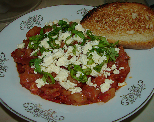 Si le-am servit calde cu branza presarata pe deasupra si cateva frunzulite tocate de busuioc si cu paine prajita