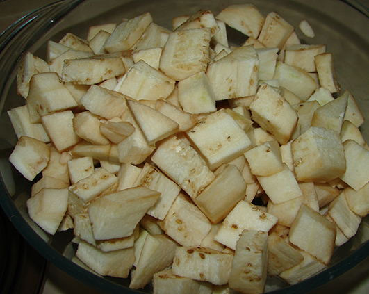 Dupa ce s-au calit binisor am adaugat doua vinete albe taiate cubulete