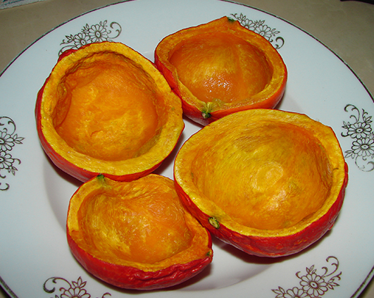 In sfarsit am ajuns sa testez micutii dovleci uchiki kuri. I-am taiat in doua si i-am curatat de seminte.
