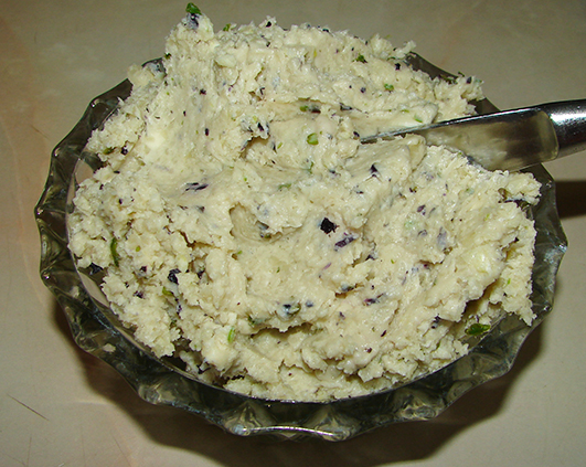 Am luat niste cascaval, putin unt si doi catei de usturoi si le-am adaugat busuiocului.