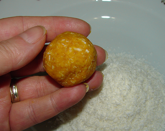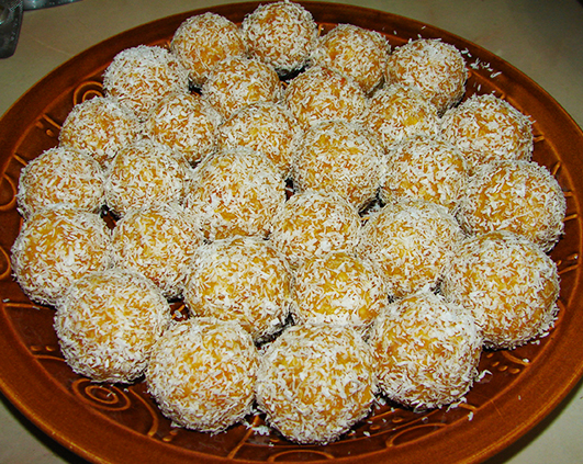 Astfel se formeaza bilute din tot aluatul, care se tavalesc apoi prin nuca de cocos
