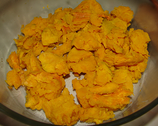 Astfel am luat niste dovleac copt din cel inecacios, de felul dovleacului depinde mult si consistenta aluatului rezultat