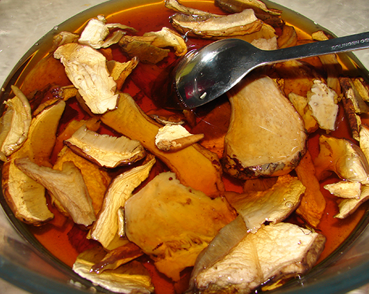 Am pus la inmuiat niste hribi, ei sunt cei care dau savoare acestei supe banale. Se pun la rehidratat in apa clocotinda si se lasa cam o jumatate de ora.
