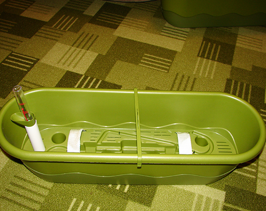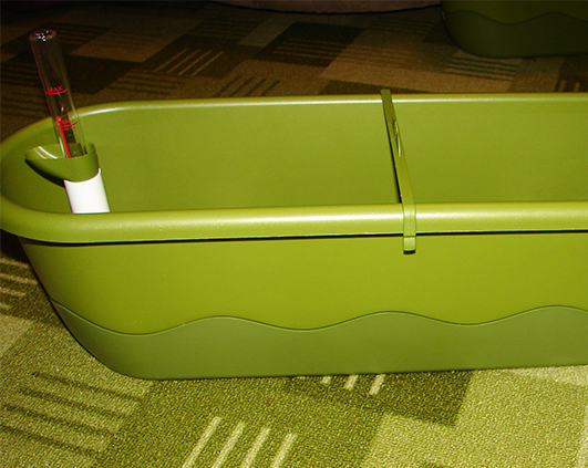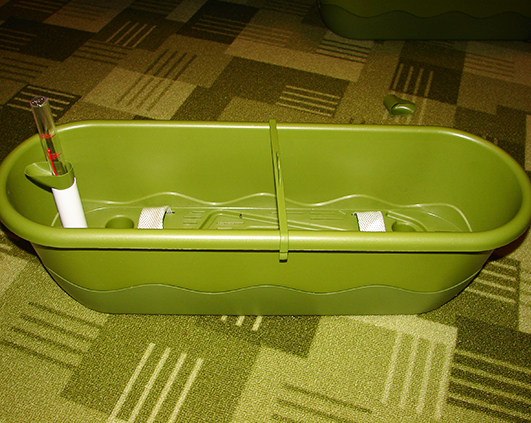 Sunt frumoase si practice, mai ales ca nu ajung mereu sa ud cate un capat de jardiniera din cauza pozitionarii ei. Acum nu voi mai avea aceasta problema. Pui apa intr-un capat printr-un tub, care are un masurator de nivel ca sa nu pui prea multa apa si sa dea pe afara, iar prin cele doua benzi de material apa se imprastie prin capilaritate uniform in toata jardiniera.