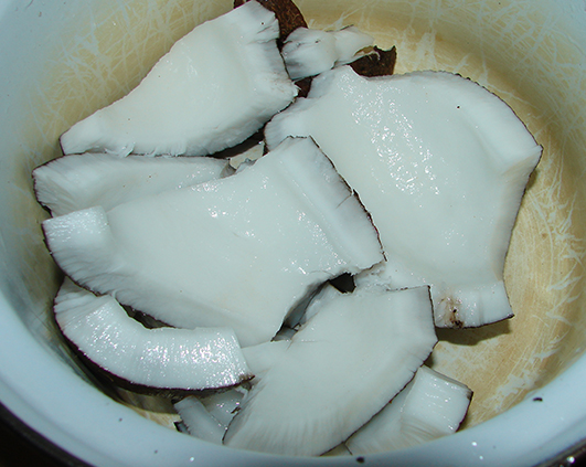 Am rontai cu pofta cateva bucati, delicioase, insa am continuat procesul pentru a obtine lapte de cocos. Daca vrei sa o pastrati asa si sa o rontaiti o puteti pune la frigider acoperita cu putina apa.