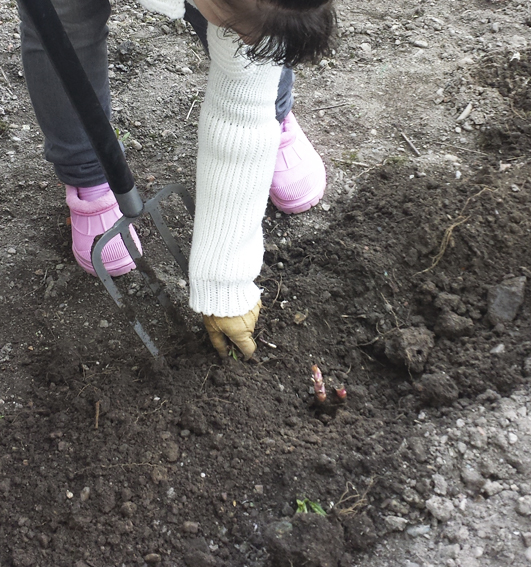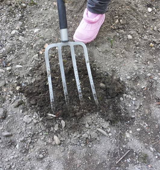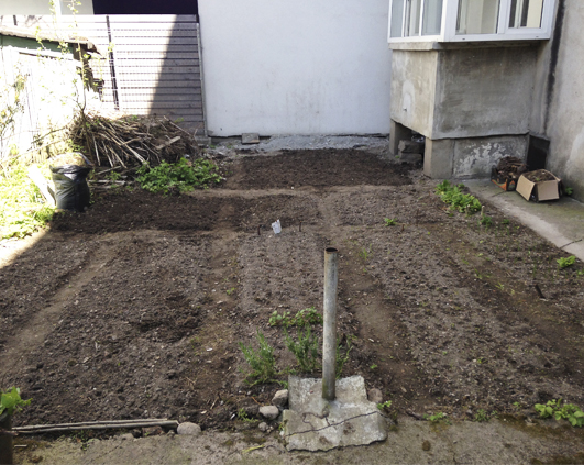 Nu pot sa nu remarc ce pamant bun si negru ai in gradinuta. Iar furca de sapat e grozava ! Spor la plantat !