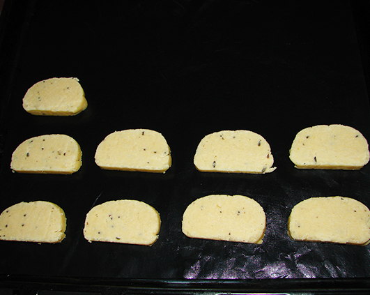 Se scoate aluatul, si asa rece se taie felii, cam de 5-7 mm grosime