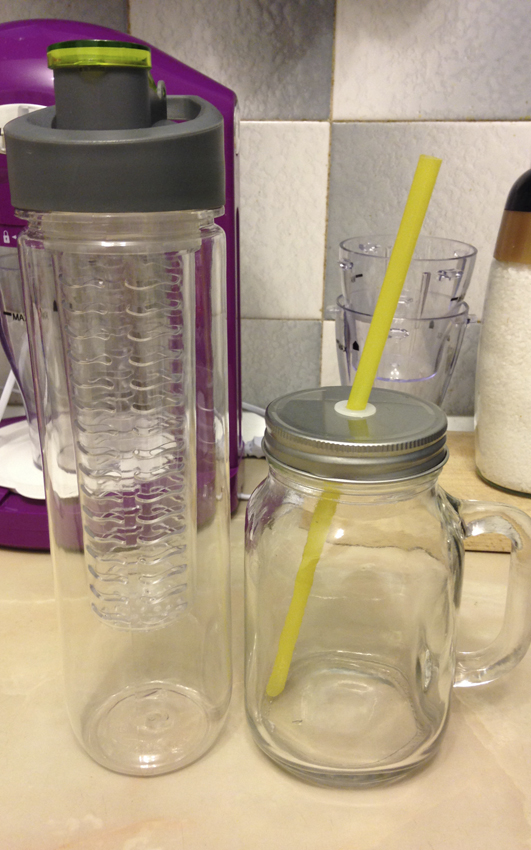 necesare pe timp de canicula: cana cu capac si pai sa nu-ti intre mustele in limonada si sticluta cu infuzor pentru fructe sa poti bea linistit apa aromata 🙂