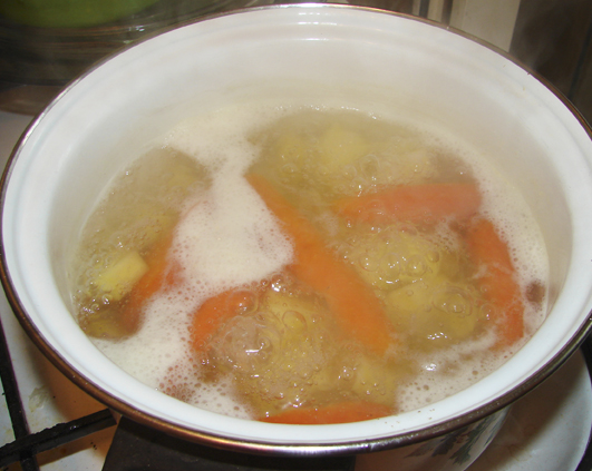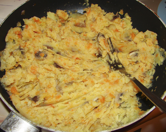 Am fiert morcovii si cartofii pana s-au putut sfarama cu furculita