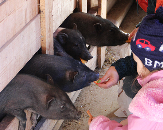 Vreme frumoasa, chiar daca frig, insa mult soare si chef de aventura. Asa ca am luat marele dovleac sculptat si l-am tocat feliute, l-am pus in plasa si l-am dus la ferma de mangaiat animale 🙂