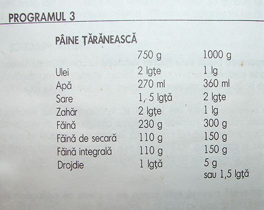 Eu am ales sa folosesc retea de paine taraneasca din cartea de la masina mea de paine