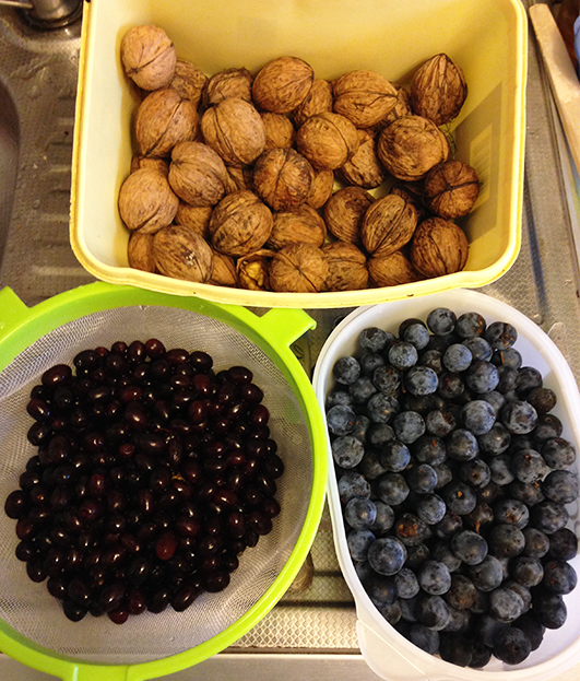 Imi place toamna cu surprizele ei: niste nuci in dar de la nucul din spatele blocului – viitor lapte de nuci gratis :), tufele de pe marginea drumului pline de porumbele delicioase, sau copacul din vecini care isi arunca darnic coanele coapte peste gard in curtea bunicilor.