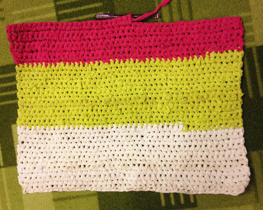 Mi-ai amintit ca am si eu prin dulap o plasa cu gheme din haine, eu am scos si 2 gheme imense din 2 cearceafuri, unul elastic din material ca de tricou, altul plusat. Numai ca nu m-am invrednicit sa le lucrez. Poate reusesc sa iau exemplu de la tine ๐Ÿ™‚