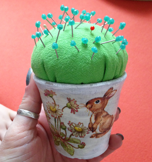 Am facut pana acum cateva dar o sa vi le arat mai tarziu. Azi vreau sa va arat perinita pentru ace. Pentru ca mereu le pierd prin casa cand lucrez cu ele am decis sa-mi fac o perinita pentru ace. Si ca sa pastram tema gradinaritului am ales sa fac un cactus 🙂